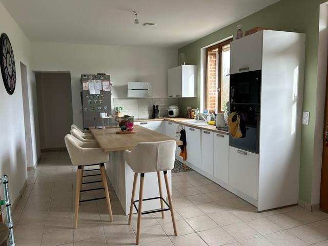 LIANCOURT FOSSE PROCHE ROYE: longère picarde en retrait de rue de 120m env comp: entrée, cuisine équipée ouverte sur spacieux et lumineux séjour avec poèle a granule, salle de bains ( baignoire te douche ) lingerie, wc, chambre de plain pied, cave, étage grand palier, bureau, 2 chambres, chauffage électrique, terrain clos et arboré de 1600m env avec plusieurs dépendance . A VOIR EN EXCLUSIVITE